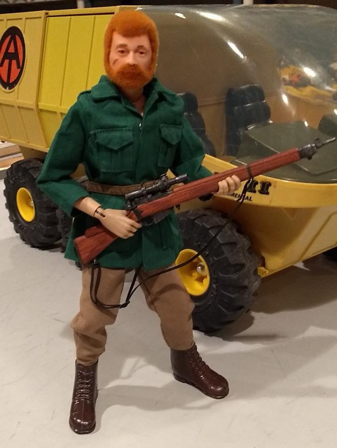 I think this guy came out pretty well. He was a basket case. I reflocked the head and replaced his arms with Walmart adventure team figure arms that had the Kung Fu grip. I put on a 3rd Son tiger hunt jacket and dug some trousers and boots from the junk box. Another Old Joe returned to active duty!