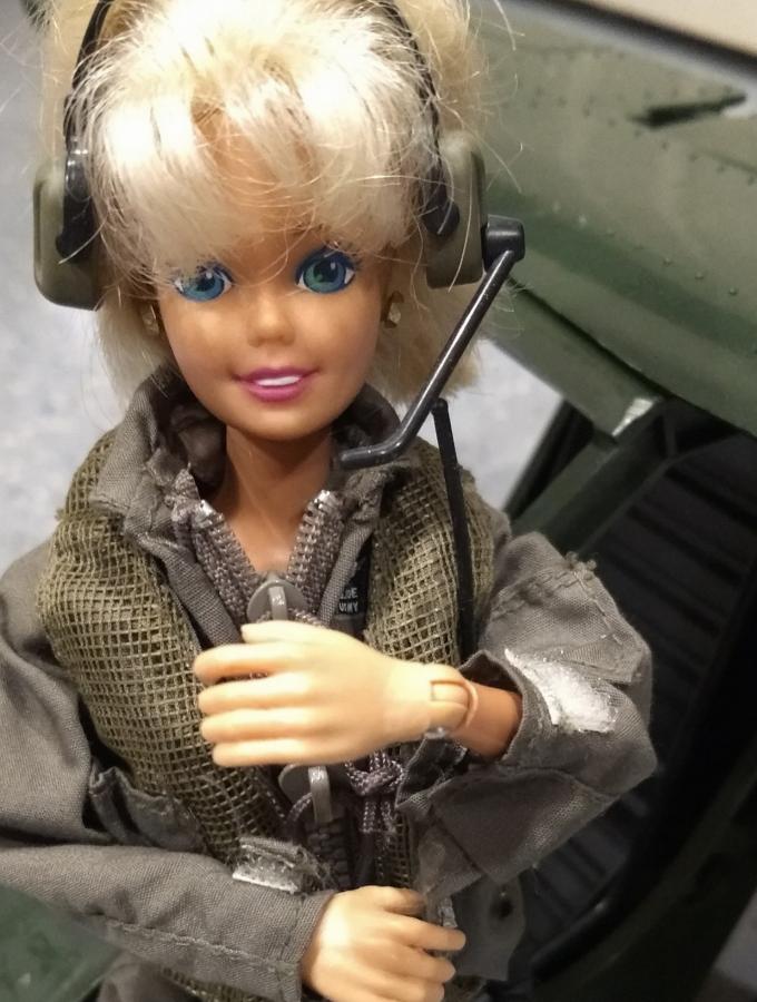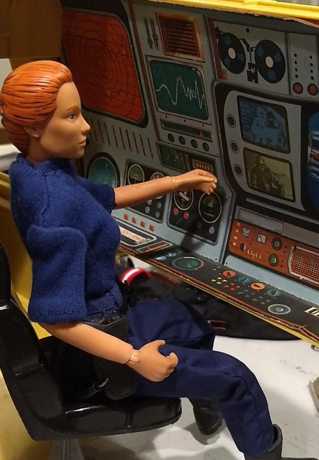 Thanks for the offer, Daryl, but I have a third son repro jacket in the junk bin as well as a vintage white tiger jacket in the junk bin. I just hate to mess with them. The Action Jackson vest is not from an original action jackson, but from the repro that was done maybe around Y2K. It was a short-lived Action Jackson line, though. Didn't look much like the original, either. The boots fit jane, and so does the vest. The shirt only works if you make it short sleeved, because Jane's hands are pretty big. I put the Action Jackson hands on an Olympic Barbie for my daughter back in the day. Before GI Jane was on the market. I will add a pic below...